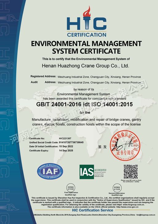 環(huán)境管理體系認(rèn)證證書中文
