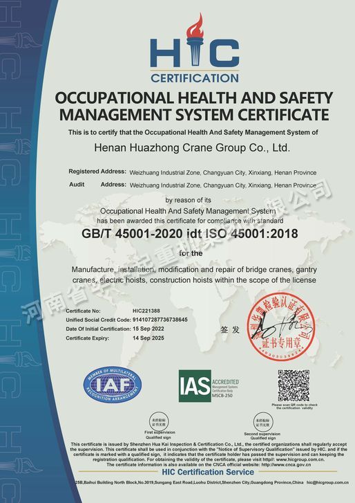 職業(yè)健康安全管理體系認(rèn)證證書英文